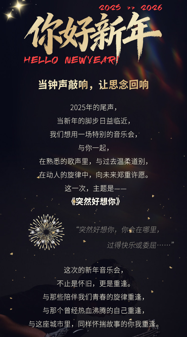 演出名称:【广州】[新年场]《突然好想你》我们的【歌】经典流行金曲LIVE现场-番禺站【网上订票】演出时间:时间待定