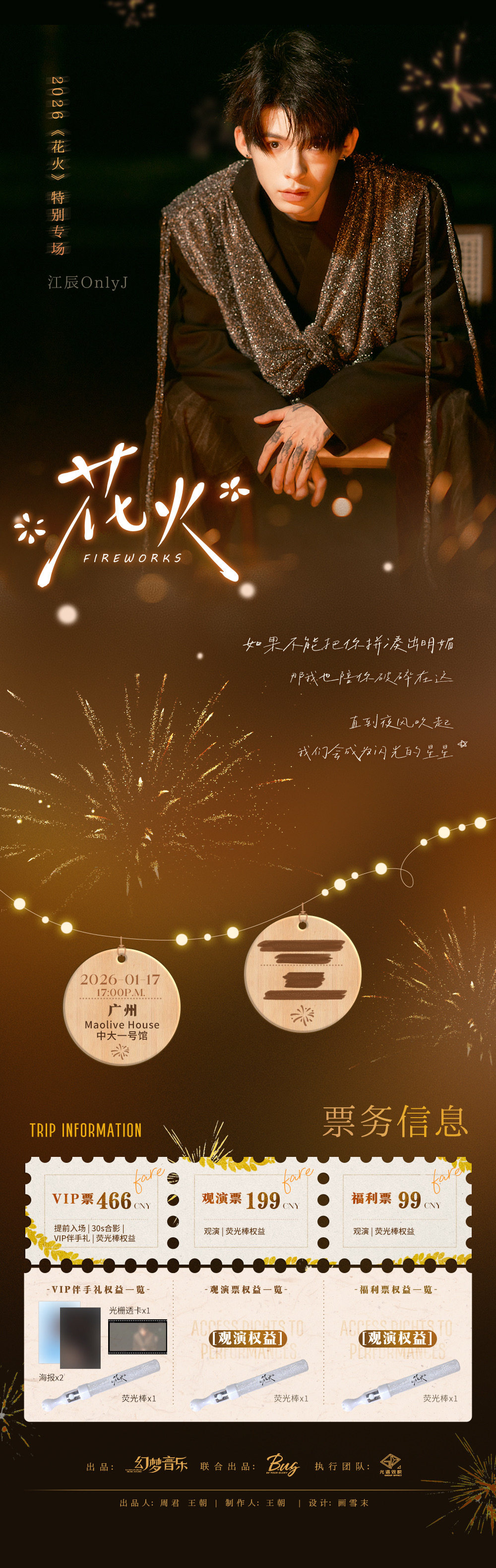 演出名称:【广州】2026江辰花火特别专场 广州站【网上订票】演出时间:2026.01.17 周六 17:00
