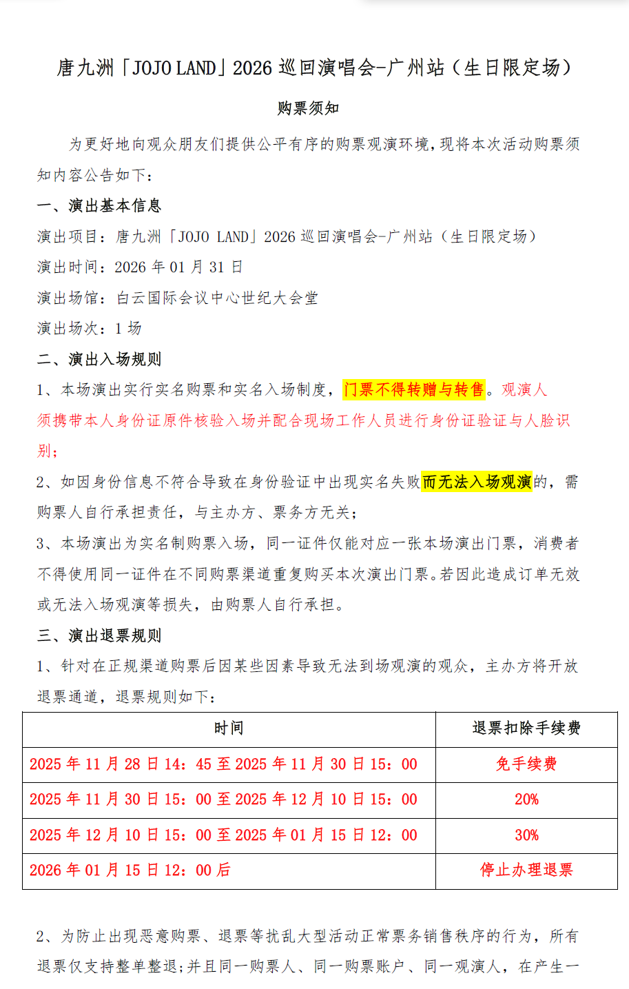 演出名称:【广州】唐九洲「JOJO LAND」2026巡回演唱会-广州站(生日限定场)【网上订票】演出时间:2026.01.31 周六 19:30