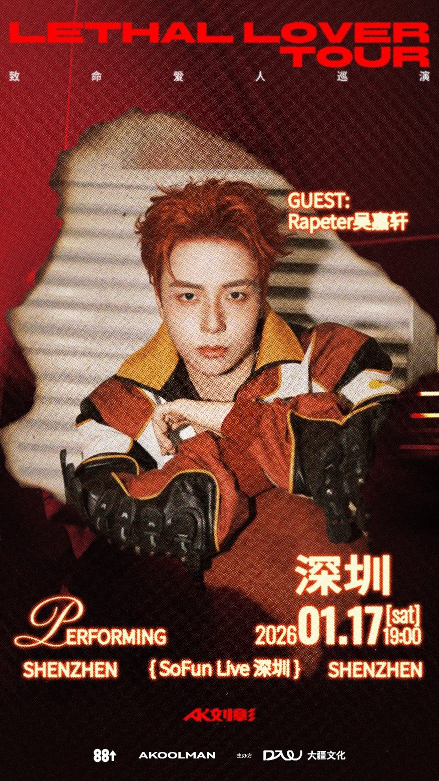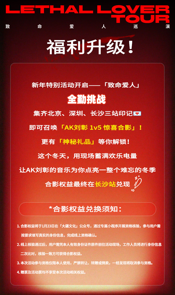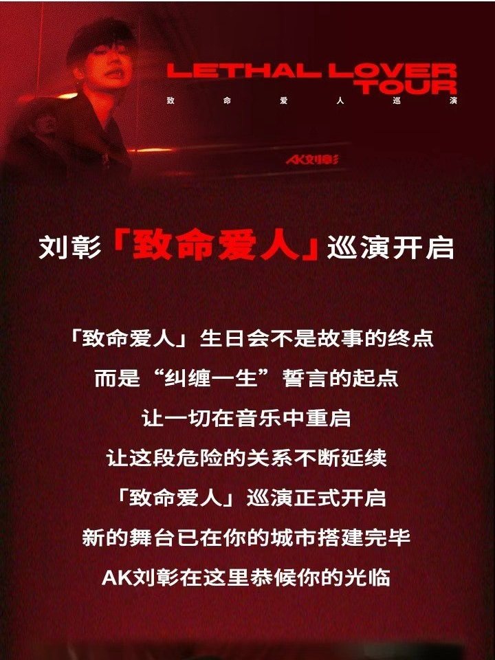 演出名称:【深圳】AK刘彰《致命爱人》巡演-深圳站【网上订票】演出时间:2026.01.17 周六 19:00
