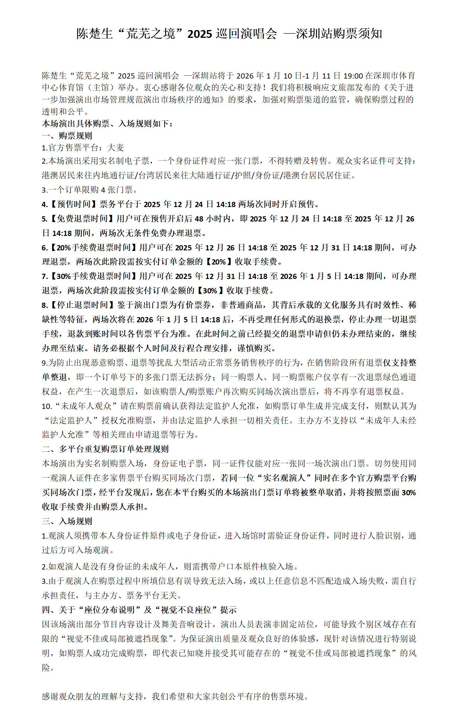演出名称:【深圳】陈楚生“荒芜之境”2025巡回演唱会—深圳站【网上订票】演出时间:2026.01.10-01.11