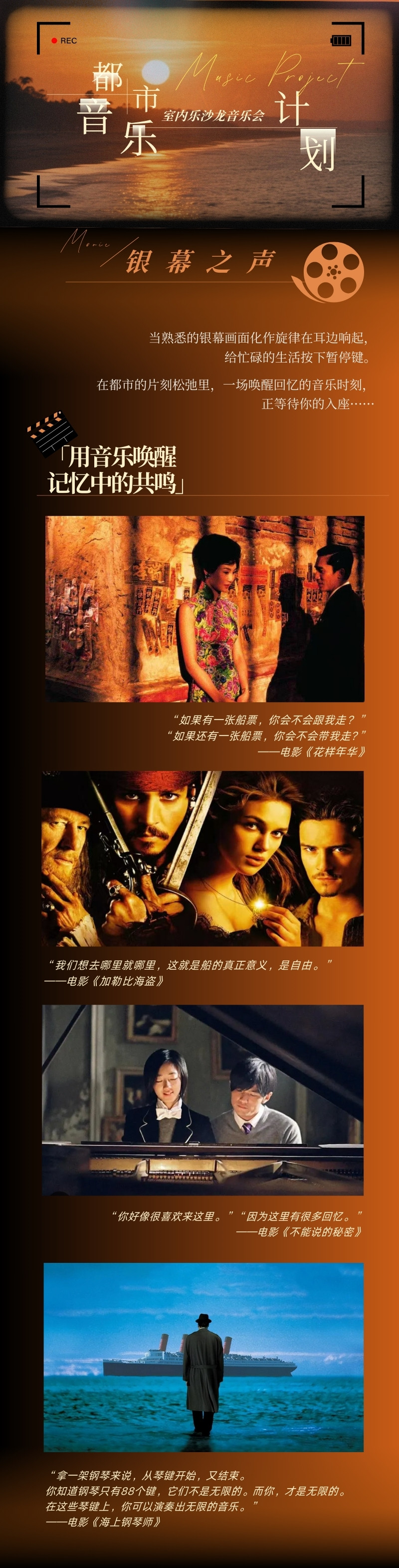 【北京】「银幕之声」《花样年华》《海上钢琴师》经典电影作品室内乐沙龙音乐会