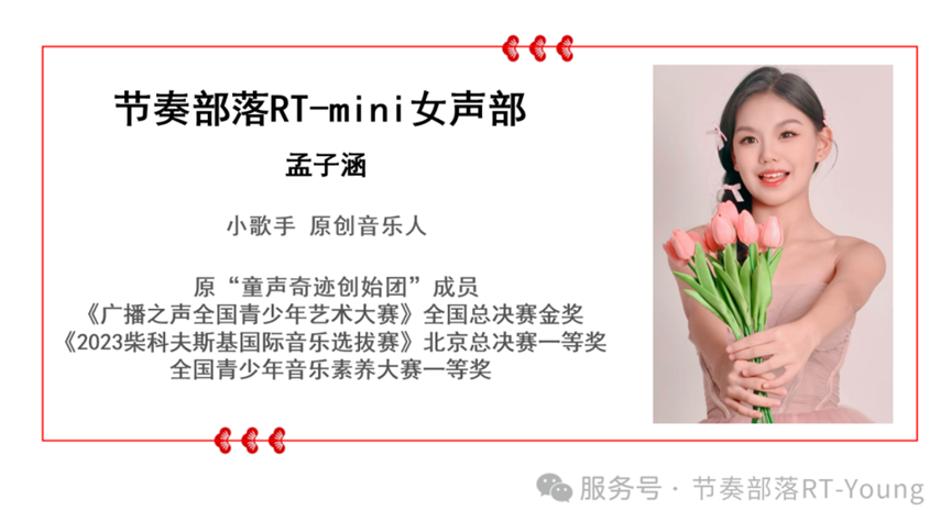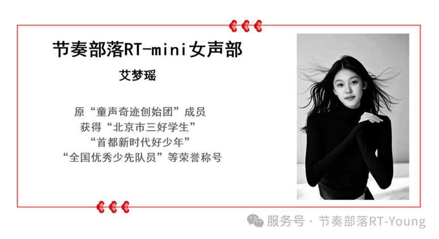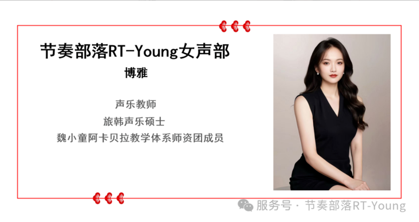 如今,RT-Young 作为新生代力量,汇集留学归国的声乐硕博、Beatbox冠军、主持人与原创音乐人,既传承专业底蕴,又注入Z世代的活力与表达,致力于以青春能量演绎阿卡贝拉的无限可能。