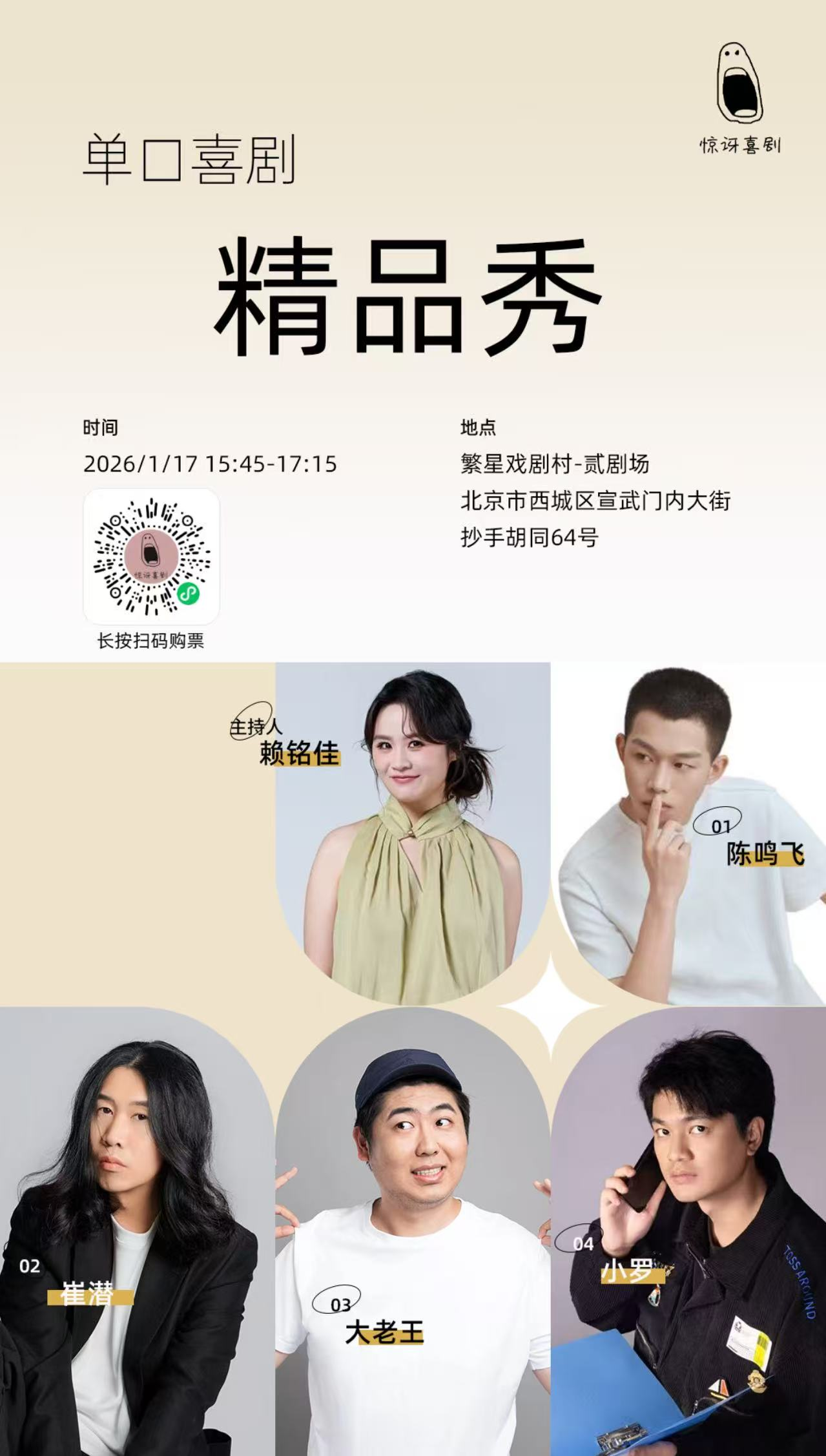 【北京】惊讶喜剧丨繁星精品秀丨小罗、大老王、陈鸣飞、崔潜、赖铭佳丨单口喜剧脱口秀丨宣武门丨西单