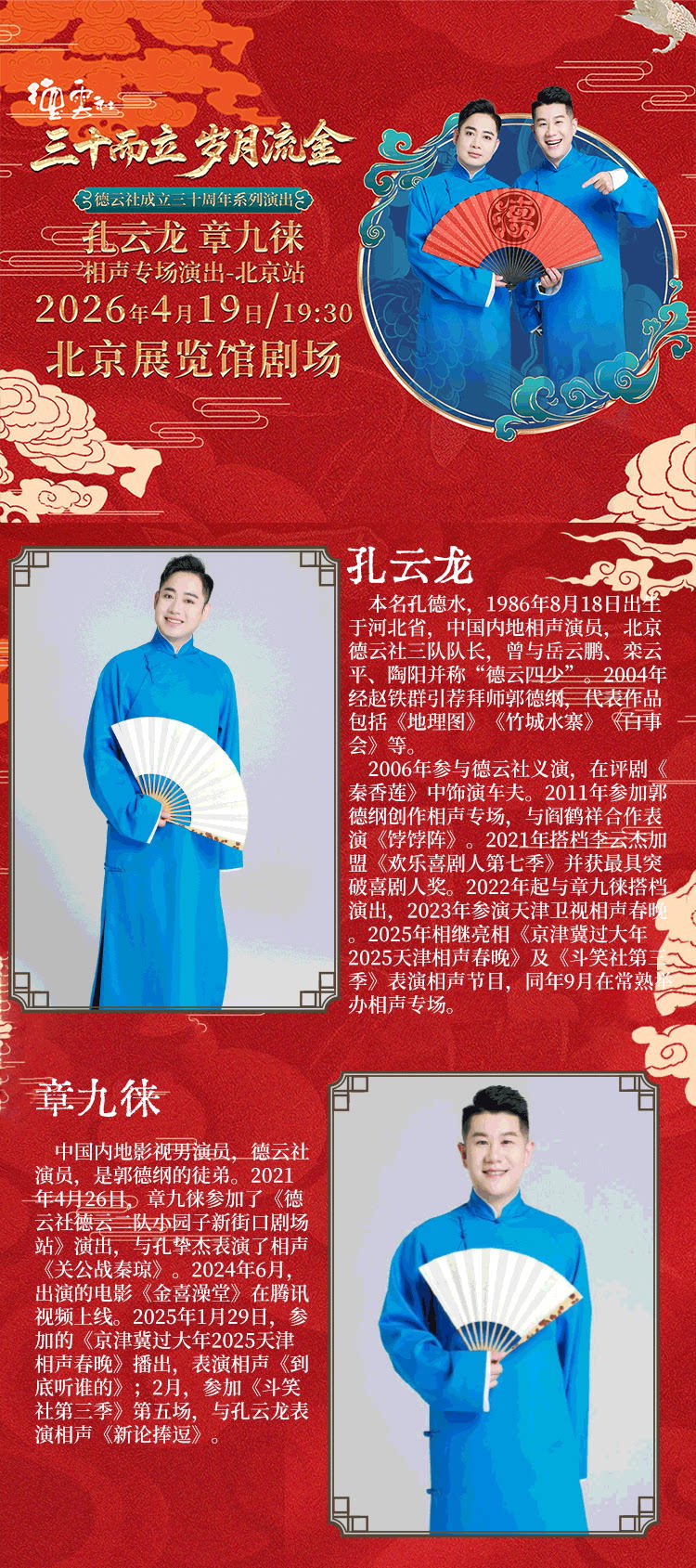 【北京】“三十而立 岁月流金”2026德云社成立三十周年系列演出之孔云龙 章九徕相声专场演出——北京站