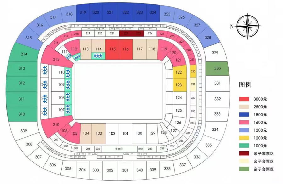 2、 在亲子看台区购买任意指定连座(座位间有连线的相邻座位)两张或三张年票,即为一套亲子年票,其中儿童年票享受半价优惠。