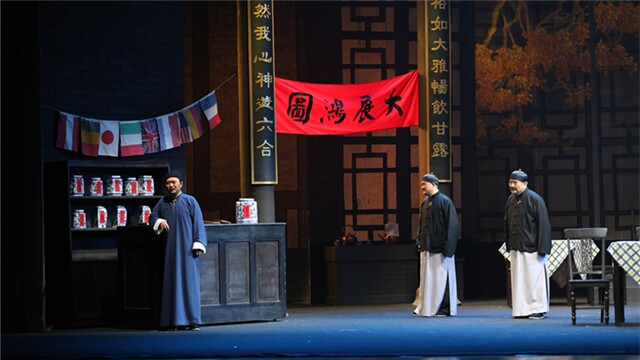 北京曲剧《茶馆》在尊重原著精神的基础上,充分运用曲剧特有的说唱艺术手段、极富北京地方音乐韵味的唱腔,进一步挖掘、呈现剧作深刻意韵。追求京腔京韵的同时,力求使曲剧趋向通俗化、大众化,而又使其具有较高的文化品位。