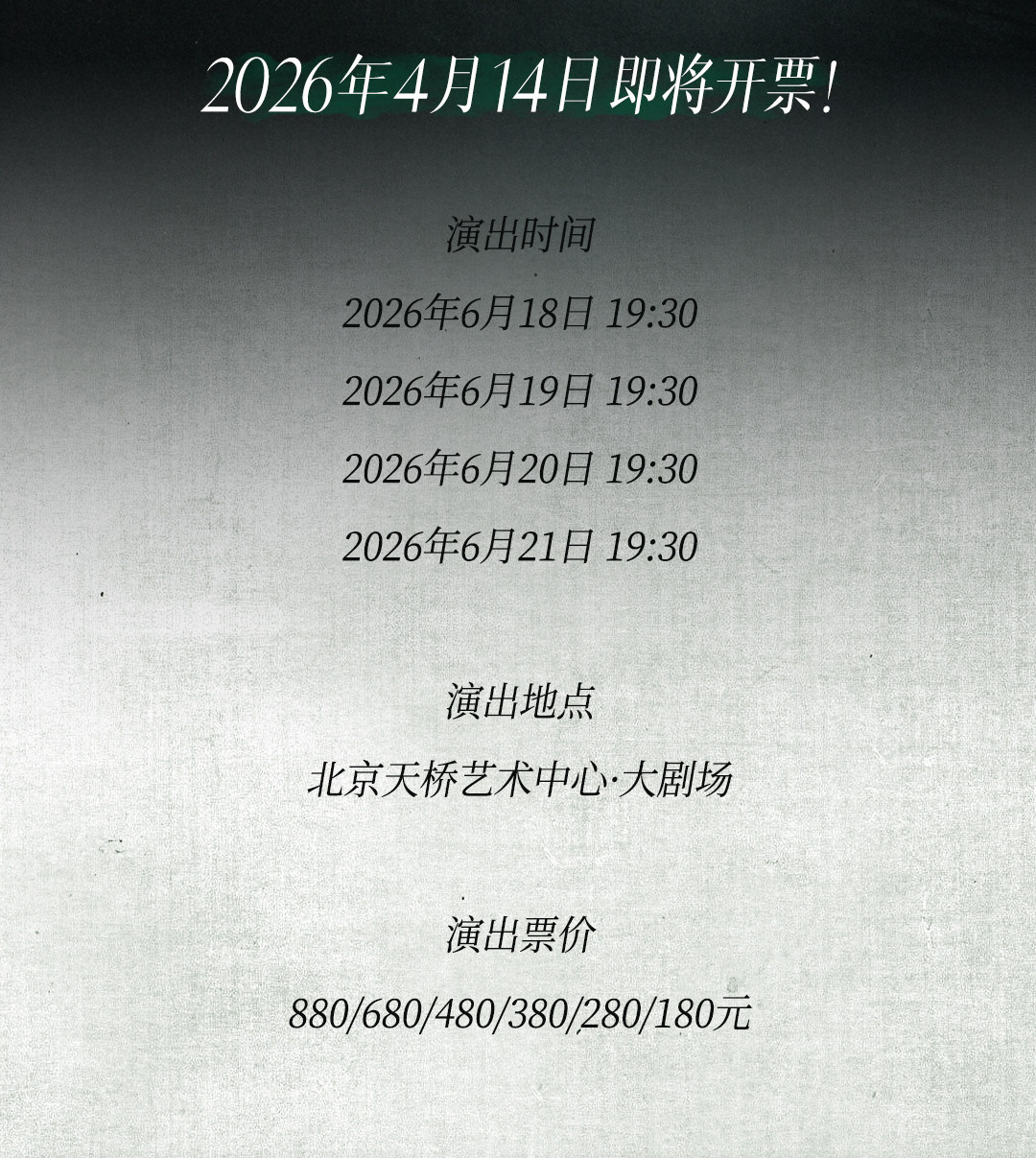 购买演出票之前请一定仔细核对日期和场次票价。购买同场同价位,单笔订单购买,默认连坐出票,如位置不能满足连坐需求,客服会与您电话沟通;