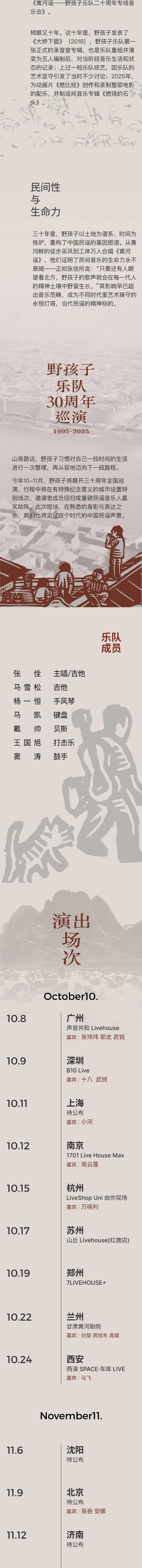 演出名称:【南京】「山高路远」——野孩子三十周年巡演 南京站【网上订票】演出时间:2025.10.12 周日 20:00