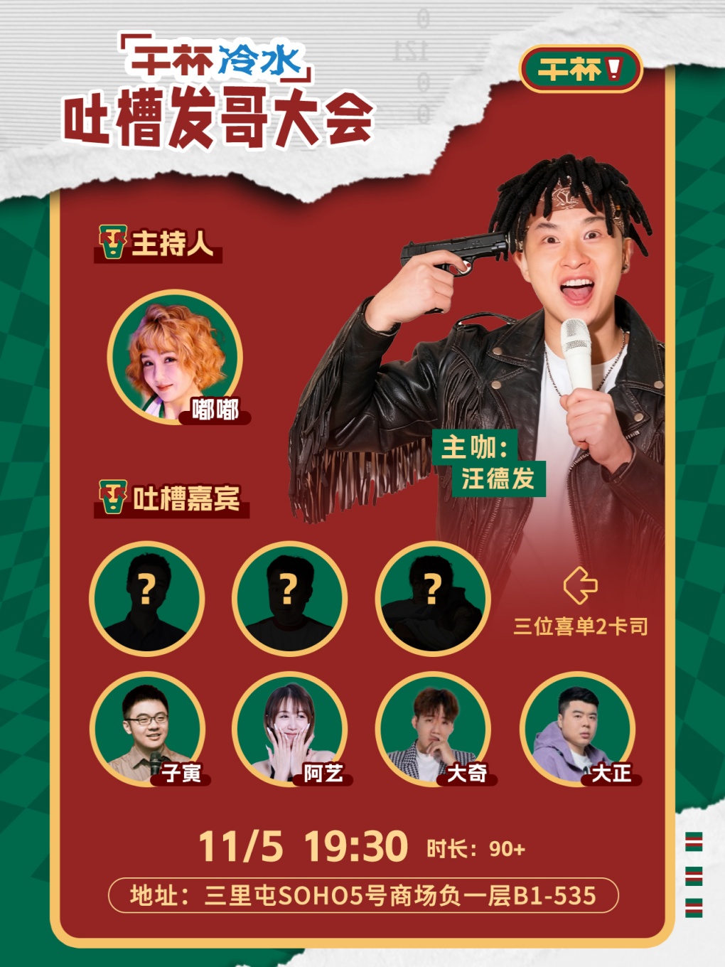 【北京】三里屯·工体丨汪德发单口喜剧中咖秀《汪德发SHOW》丨脱口秀专场丨综艺卡司丨干杯喜剧