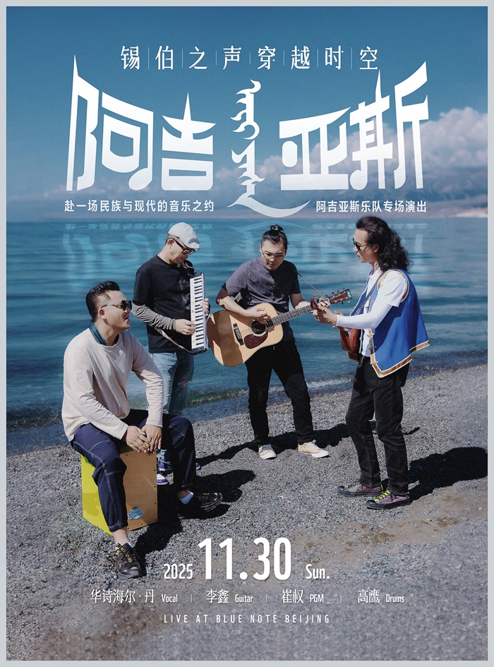 如果你向往边疆的辽阔风情,痴迷民族音乐的独特魅力,或是想感受传统与现代碰撞的惊艳,就别错过11月30日在Blue Note Beijing上演的视听盛宴!让我们赴约现场,在阿吉亚斯的旋律里,穿越时空遇见锡伯族的千年故事,在鼓点与琴弦的共鸣中,体验最纯粹的音乐热爱与文化传承。