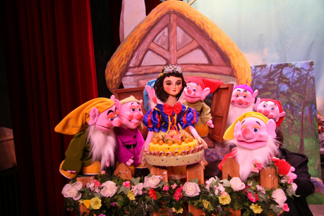《白雪公主》:很久很久以前,在一个王国里,有一个美丽的王后生了一个漂亮的公主,她有雪一样的肌肤,红玫瑰一样的嘴唇,乌木一样的黑发,她的名字就叫做白雪公主。生完公主之后,美丽的王后就去世了。没过多久国王就新娶了一位皇后。她有一面魔镜,每日都会询问谁是世界上最美丽的女人。可是因为有了白雪公主,魔镜说王后她已经不是世界上最美丽的女人了,嫉妒的王后决定要杀死白雪公主。王后下令让森林里的鳄鱼吃掉白雪公主,但白雪公主很小的时候救过鳄鱼的命,为了报答白雪公主,放走了她。白雪公主跑到森林里伤心的哭泣,小动物们和她一起唱歌跳舞安慰她,并告诉白雪公主丛林深处有一间小木屋可以休息。白雪公主到了小木屋之后,遇到了七个小矮人,他们很喜欢白雪公主,并且收留了她。王后知道了白雪公主没有死非常生气,她打扮成了老奶奶的样子,找到了白雪公主,用毒苹果毒死了她。小矮人收工回到家,看到躺在地上的白雪公主,大哭了起来。这时王子赶到了,王子的真爱之吻唤醒了白雪公主,施魔法的王后也消失在了空气了,王子和公