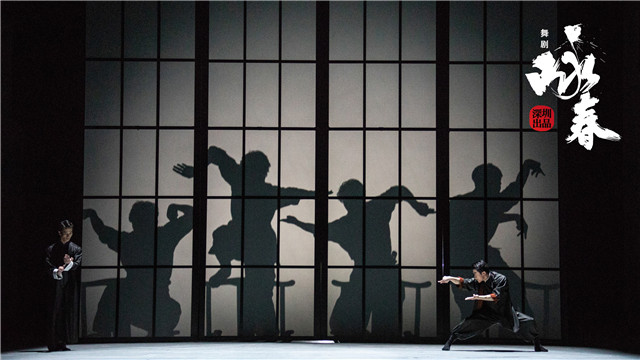 ??全剧共分为“立足”“彷徨”“理想”“离别”“困境”“传承”六个篇章。剧目巧妙地采用“双线索”结构,将叶问赴香港“开一扇门”的经历和深圳电影《咏春》剧组的拍摄历程在剧中并行展现;同时,创新融合了国家级非遗“咏春拳”和“香云纱”,链接传统和当代,带来两个时代的同频共振,既展现出了聚光灯下的英雄风采,也致敬了平凡人的追光梦想。