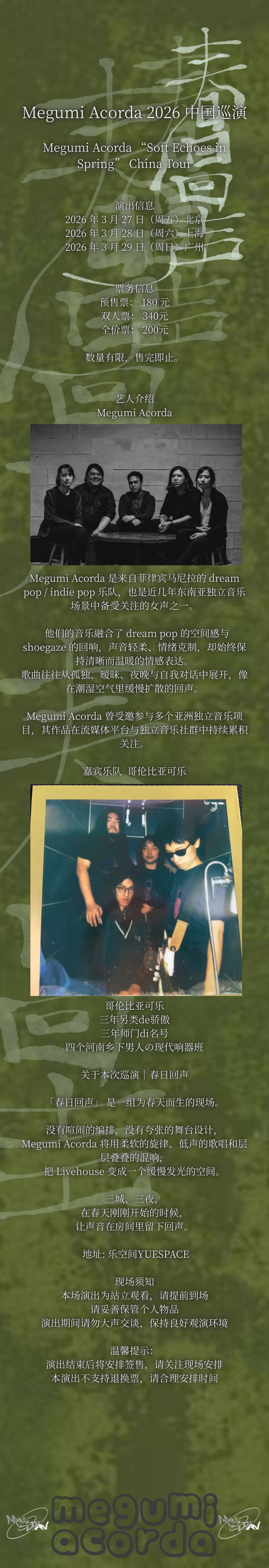 【北京】Megumi Acorda 2026 巡演|春日回声 北京站